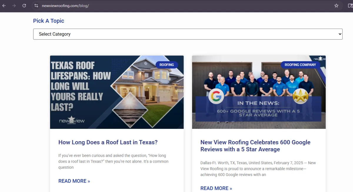 Dallas links to .com/roof-repair with "roof repair". Link to .com/roof-inspection with "roof inspection", etc.